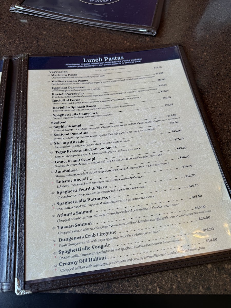 Customer reviews highlight the warm atmosphere and attentive service provided by staff like Melissa and Sophie, creating a welcoming dining experience. Popular dishes include chicken basil tortellini, Chicken Parmesan, and Mediterranean penne, celebrated for their generous portions and excellent flavor combinations. Diners rave about the seafood Portofino pasta and eggplant parmesano sandwich, which showcase the restaurant's commitment to quality.